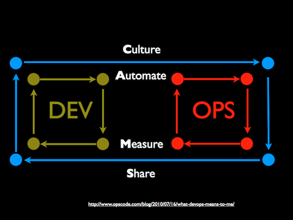 Of course automation, measurement, culture and sharing can happen in any of the areas, but some of the areas seem to have a stronger focus on each of these parts.
