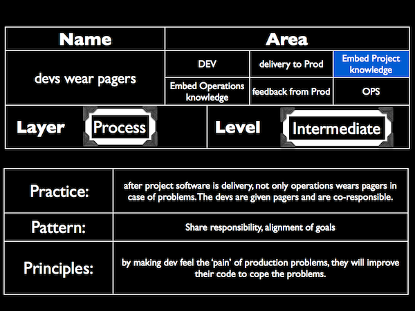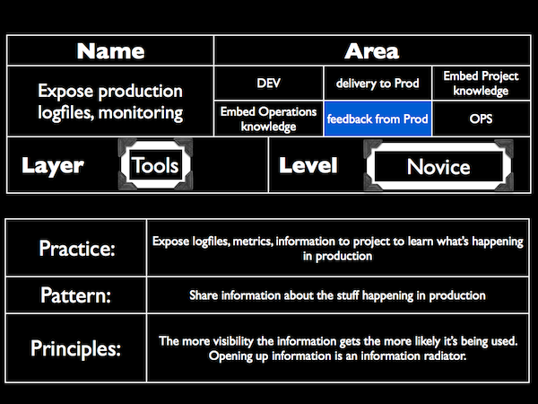 This blogpost is a first stab at providing a structure to codify devops practices. The wording, descriptions are pretty much work in progress, but I found them important enough to share to get your feedback.