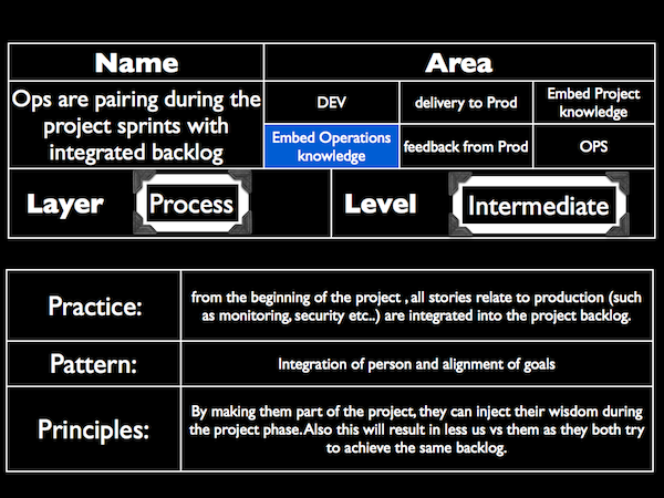 - Area 3 : Embed Project(Dev) into Operations : when the project takes co-ownership of everything that happens in production